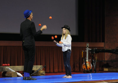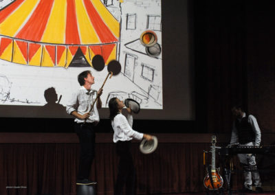 Jonglerie, monocycle, acrobaties et vidéos, accompagnés et soutenus par des performances musicales ont créé un univers léger et joyeux le temps d’une soirée au cinéma d’Echallens. Un public enchanté, des artistes heureux, c’est ainsi que l’Alchimie a commencé et clos sa saison extraordinaire.