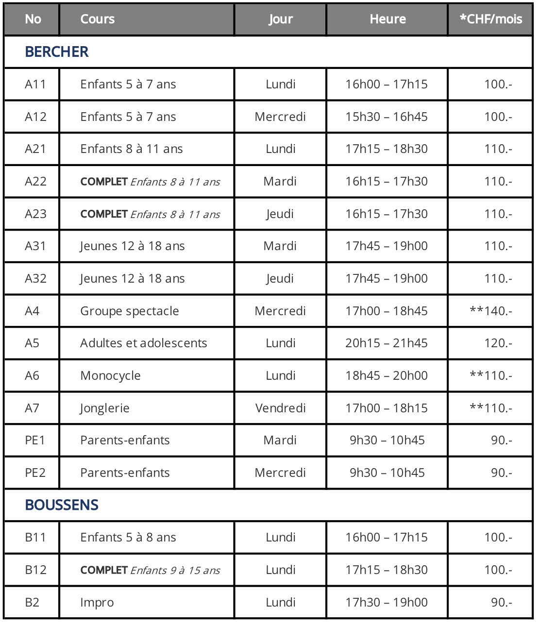 Bien qu’indépendante de l’association, l’école de cirque de Bercher en est le partenaire incontournable. Ses élèves et coachs participent activement et avec grand enthousiasme aux nombreux spectacles montés par l’association.
